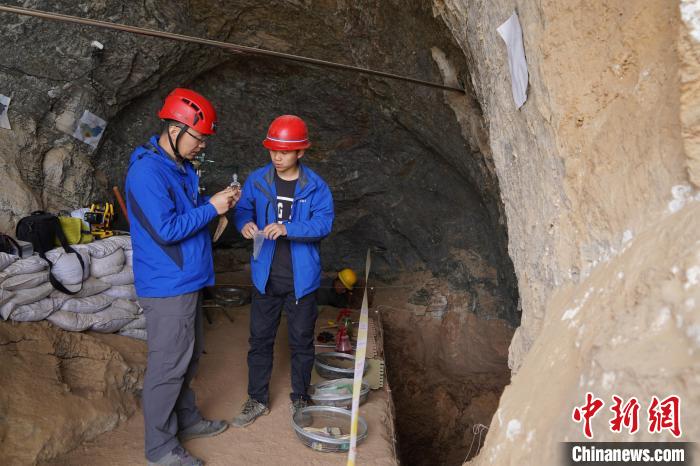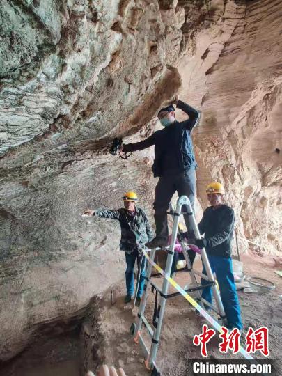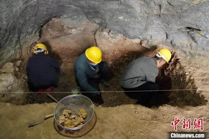 图为考古人员在洞内工作 考古队供图 摄