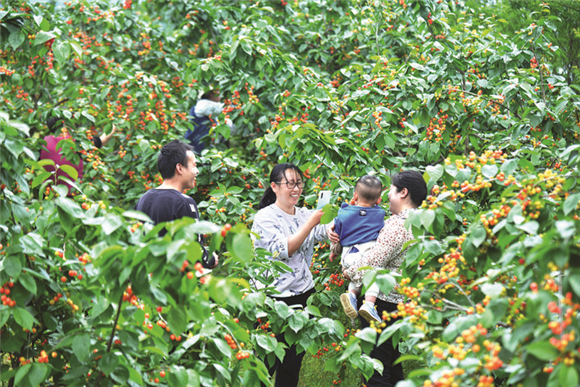 华龙网-新重庆客户端4月15日6时讯(通讯员 付作侨)近日,重庆市万州区沙河街道万斛村,圆润饱满的樱桃挂满树梢,吸引不少市民到田间体验采摘乐趣。万州积极发展多元化的农特产业,每当蔬果成熟季,乡镇田园人气旺盛,村民实现增收。