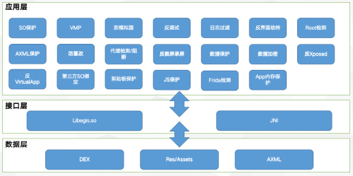 下文将分别从Android,iOS两个平台的App出发,从代码安全、攻防安全、API接口安全三个方面详细描述此次保护方案的具体实施办法及最终的保护效果。