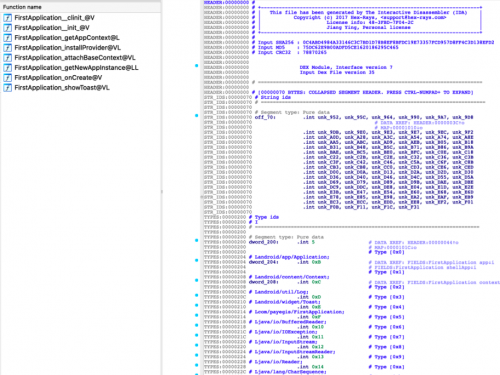 通过逆向工具查看经过保护后的DEX文件反编译效果,可见保护后的核心代码得到了保护,无法查看具体函数方法,不易被逆向分析,重要的数据和业务逻辑不易被泄漏,达到了代码保护的目的。