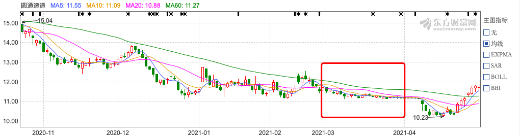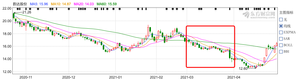 韵达股价也在3月蒙受必然程度的下滑。