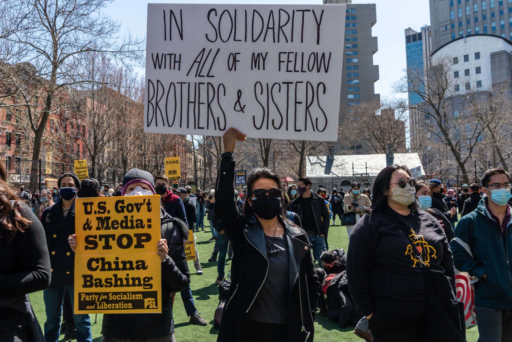 抗议者凑集在哥伦布公园进行游行(图片滥觞:amny)