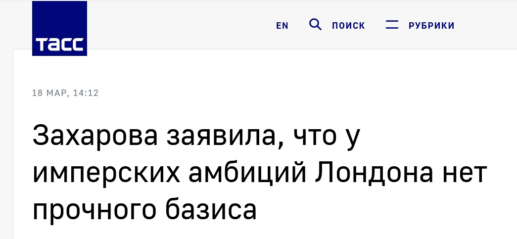 “帝国野心的问题依然存在。有野心,但没有基础。况且,唉,(英国的)基础又破烂又腐朽。” 扎哈罗娃在采访中评论道。