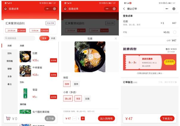 电子菜单自定义,主推商品可以放在推荐位,能有效提高主推商品销量 。还能发放优惠券、返店券。顾客领到优惠券,消费心理得到满足,会帮助提升下单率和返店率 。