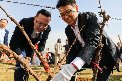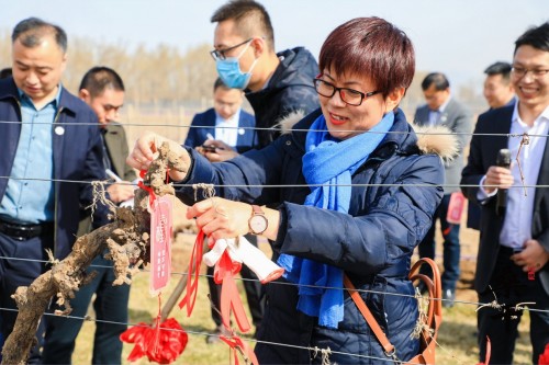 在桑干酒庄有着40年树龄的“树王”旁,嘉宾们手执铁锹小心翼翼将葡萄藤蔓上方的泥土轻轻拂去,为葡藤掀开越冬的一袭雪梦。待藤蔓充分露出后,嘉宾们拉起藤蔓将其悄悄唤起,让每一枝藤蔓都能充分感受春天的气息。