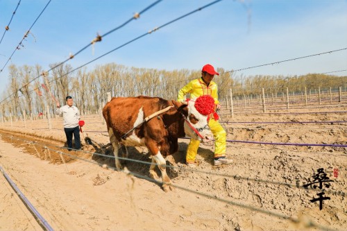 微风拂面春意浓,耕牛展藤闹春忙。在嘉宾们的共同见证下,耕牛缓缓迈出坚定步伐,唤起桑干酒庄沉睡一冬的土地。桑干酒庄也借此,以俯首耕耘孺子牛,创新发展拓荒牛,艰苦奋斗老黄牛,新“三牛”精神勉励自身脚踏实地,实干前行,更寓意葡藤生生不息。
