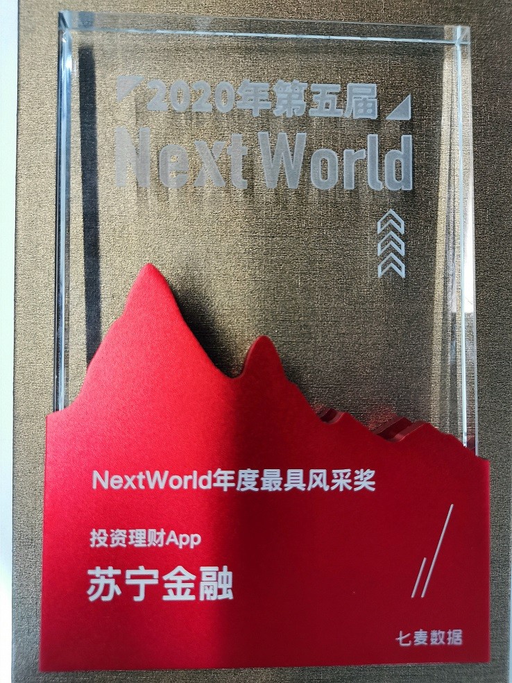12月22日,由七麦数据主办的2020第五届NextWorld峰会暨年度风采奖盛典在北京举行,本届峰会以“跨越向新,链接增长”为主题,涵盖游戏出海、直播电商、社群营销、裂变增长等领域,3000+创业者、资深大咖、权威媒体等嘉宾汇聚一堂,围绕移动增长新领域,共探增长新机遇。为表彰在互联网领域不断创新、追求卓越的优秀企业、品牌,会上重磅发布了“NextWorld2020年度风采奖”,苏宁金融APP因其便捷、智能、普惠的投顾服务,深受用户喜爱,获得年度投资理财APP大奖。