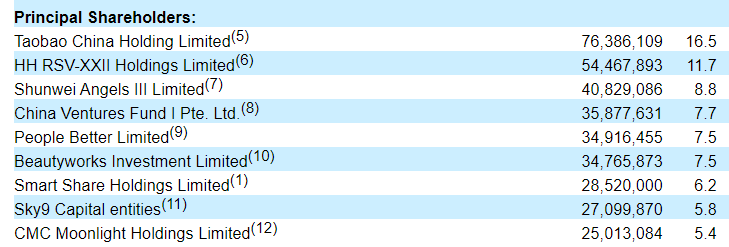招股书显示,怪兽股东分配比中,蔡光渊仅持股6.6%,淘宝中国控股有限公司是最大的股东,持股16.5%。