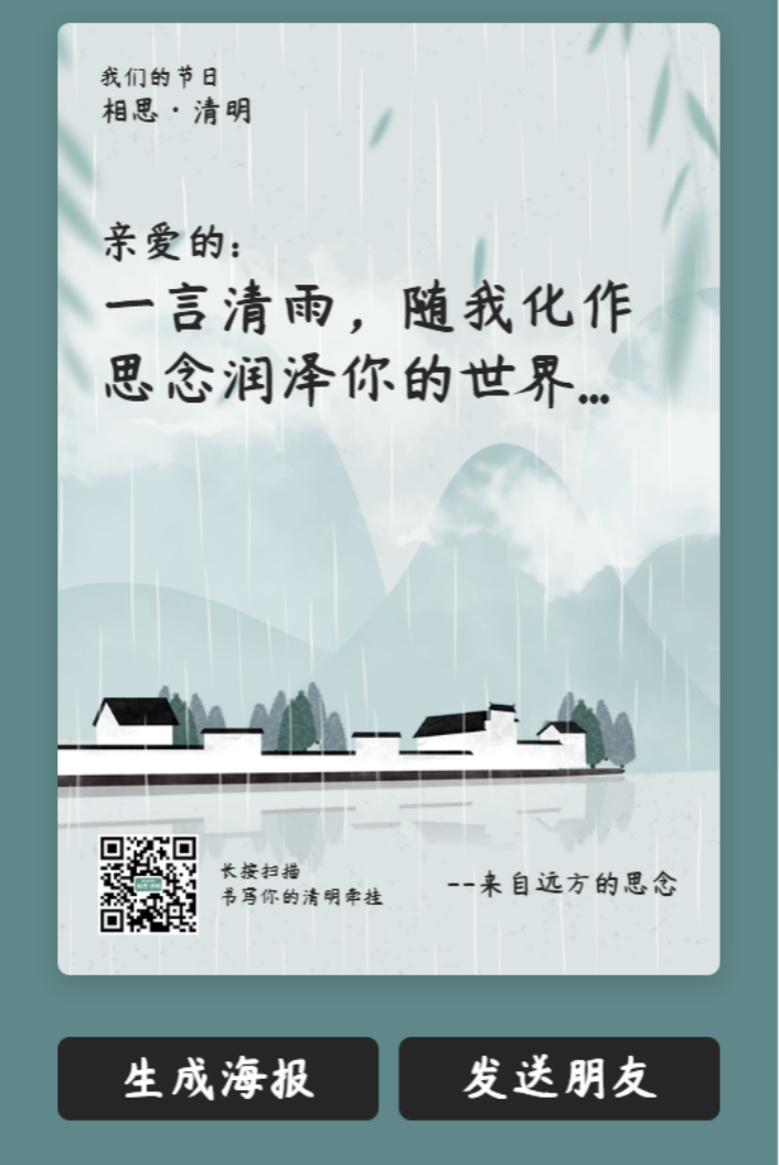 扫描进入“我想对你说”小程序后,市民读者即可匿名或公开写下自己最想对已故亲友说的几句话。在结束页面,读者还可生成点击“生成海报”,保存海报至手机相册留念,或发送到朋友圈。也可点击“发送朋友”,将小程序分享给他人。